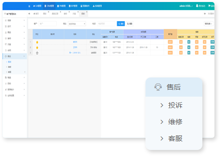 客服管理模塊中植入的提醒功能,可定時、定期或按周期提醒客服回訪;投訴功能可以進行售后維護。